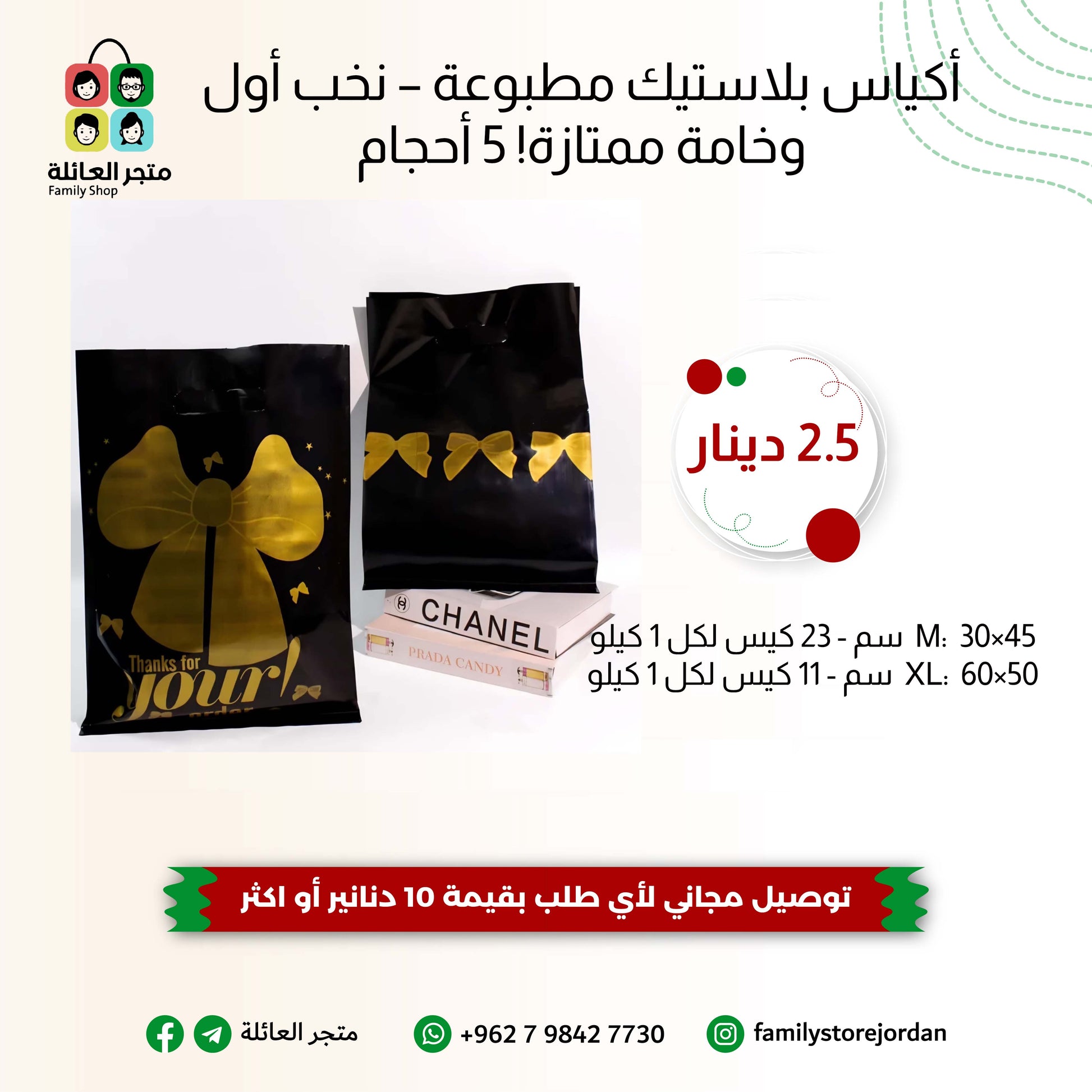 لماذا تختارونها من متجر العائلة؟ تعتبر أكياس  إضافة قيمة لأي عمل تجاري. فهي لا تساعد فقط في نقل المنتجات بأمان، بل تعزز أيضًا صورة علامتكم التجارية في أذهان العملاء. احصلوا عليها الآن من "متجر العائلة" واستمتعوا بتغليف احترافي يرضي عملاءكم!