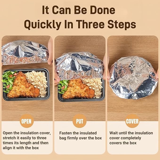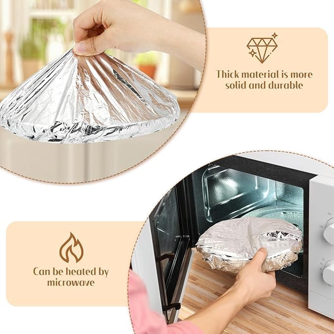 مواد عالية الجودة: مصنوعة من رقائق الألومنيوم الآمنة للطعام، وهي مادة متينة وتوفر عزلًا حراريًا جيدًا.