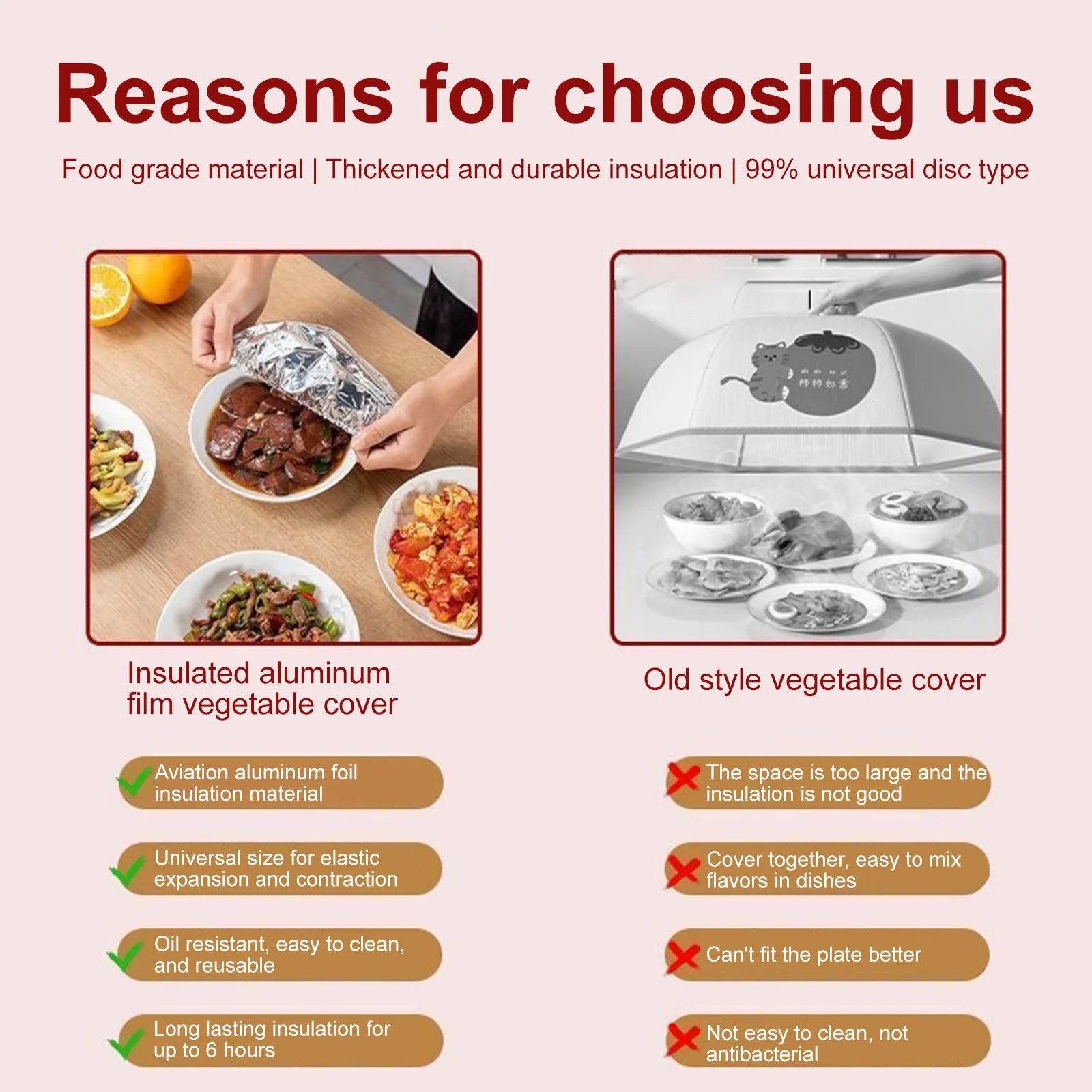 مناسبة للطعام الساخن والبارد: يمكن استخدامها لتغطية الأطعمة المطهوة حديثًا أو لحفظ الأطعمة الباردة في الثلاجة.