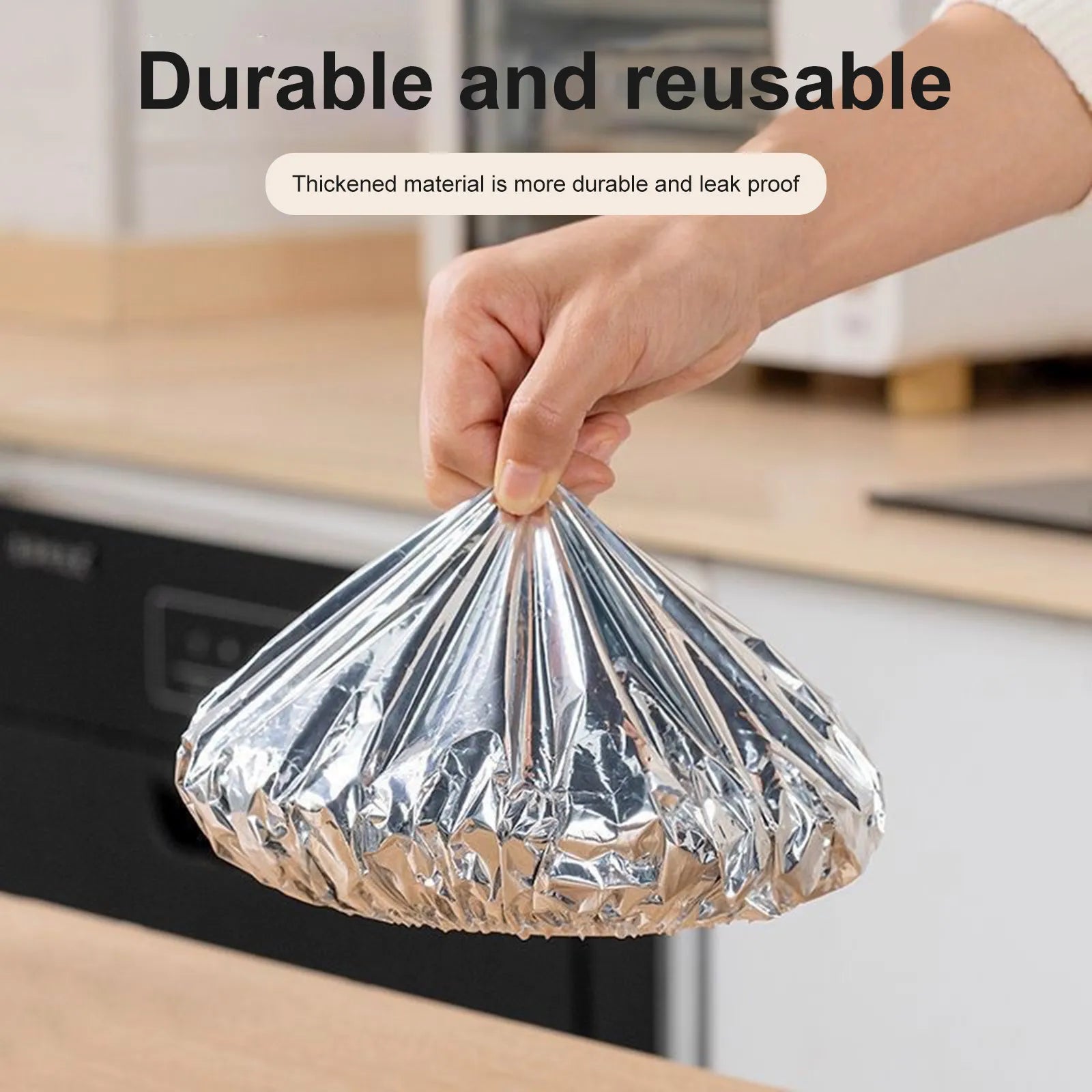 أكياس حفظ الطعام من رقائق الألومنيوم أغطية قابلة لإعادة الاستخدام لتخزين الطعام الساخن والبارد أغطية أوعية قابلة للتعديل ومحكمة الغلق، أكياس تغليف مطبخ عالمية محكمة الغلق لتغطية الطعام (10 قطع)