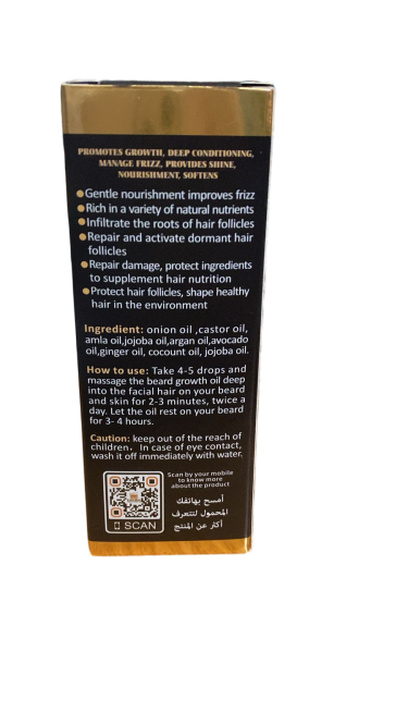 يعمل هذا الزيت على تغذية الشعر من الجذور، مما يساعد على ملء الفراغات، وزيادة كثافة الشعر، ومنح اللحية مظهرًا صحيًا وجذابًا. كما أنه يرطب اللحية والبشرة تحتها، ويقلل من الحكة والجفاف، ويضفي لمعانًا طبيعيًا.