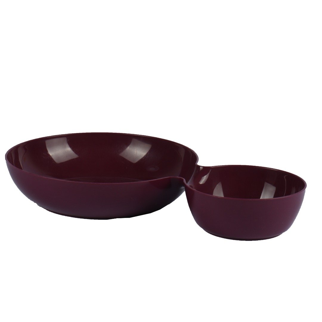 يتميز بتصميم فريد من جزأين، يجمع بين وعاء أكبر لوجباتكم الرئيسية أو لتناول الحيوانات الأليفة، ووعاء أصغر منفصل مثالي للوجبات الخفيفة، الصلصات، أو للمياه.