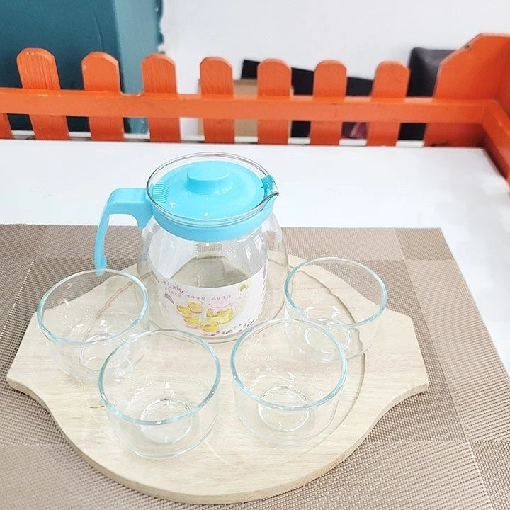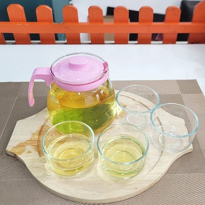 طقم شاي زجاجي فاخر عالي الجودة ابريق 750 مل مع 4 فناجين