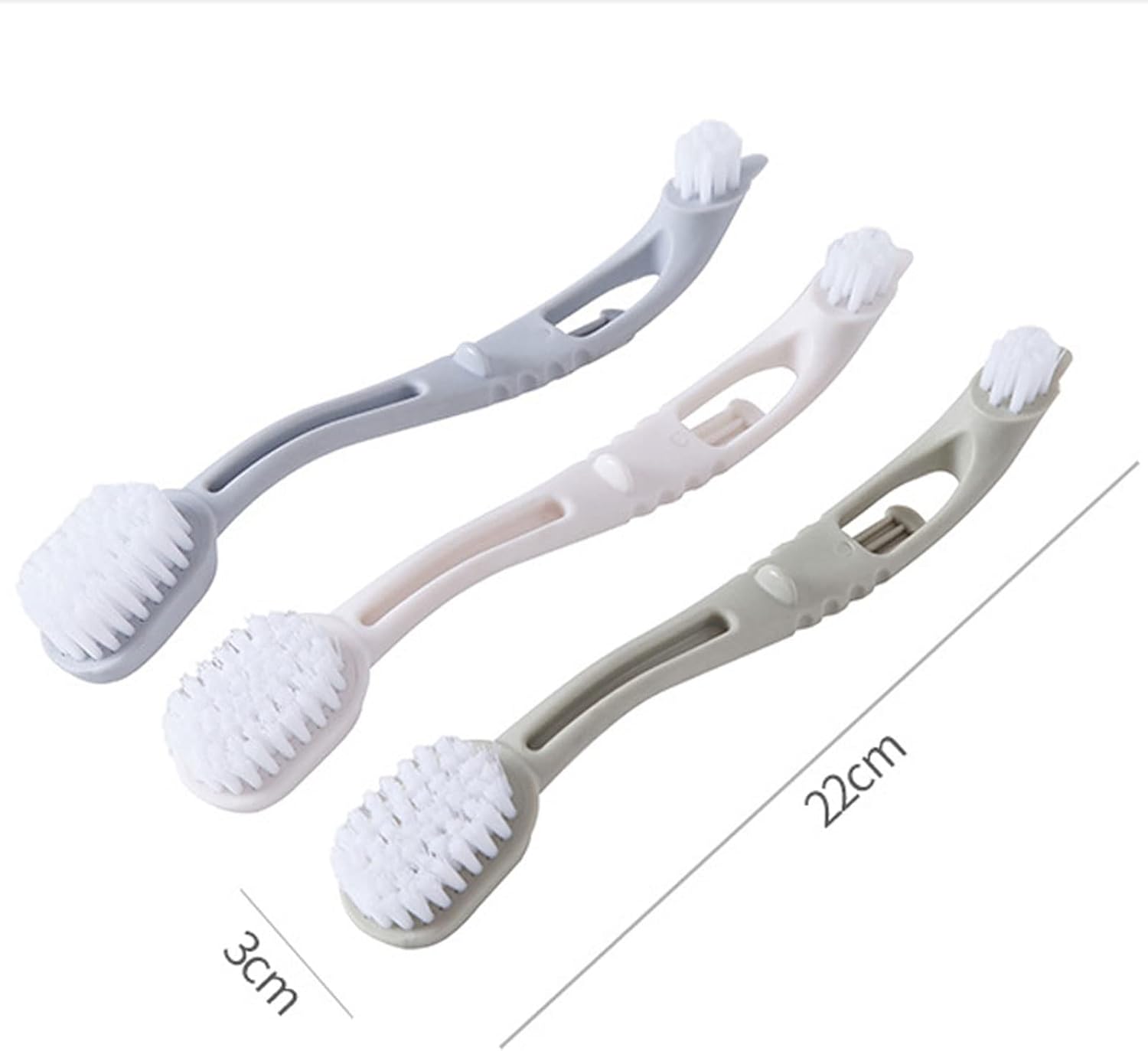 فرشاة تنظيف لتنظيف الأحذية المحمولة ذات الرأسين وأدوات تنظيف الأحذية وفرشاة غسل الأحذية والأحذية الرياضية ومقبض طويل من البلاستيك ومنظف منزلي