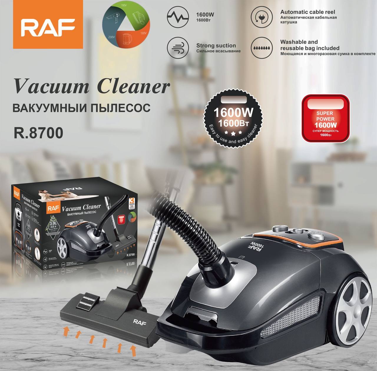 🛒 RAF R.8700 – مكنسة كهربائية قوية ومتعددة الاستخدامات وصف مختصر: قدرة 1600 واط، قوة شفط عالية، فلتر HEPA، كيس قابل للغسل، بكرة سلك أوتوماتيكية، ملحقات متعددة، تنظيف شامل لكل المساحات.