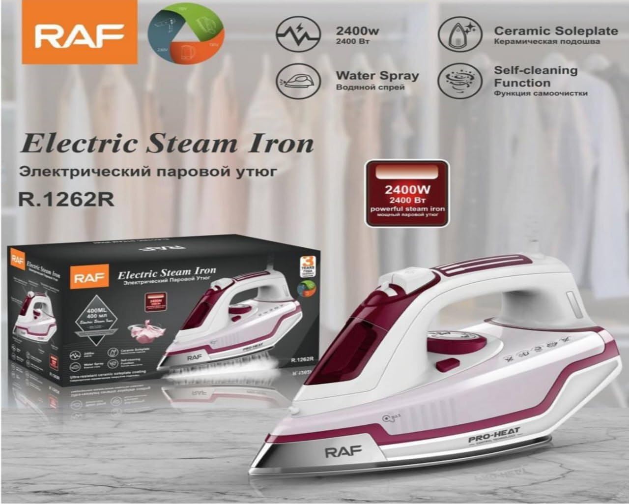 مكواة بخار RAF R.1262R بقوة 2400 واط - أداء لا مثيل له للكي السريع والفعال