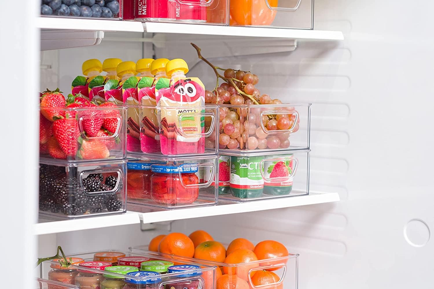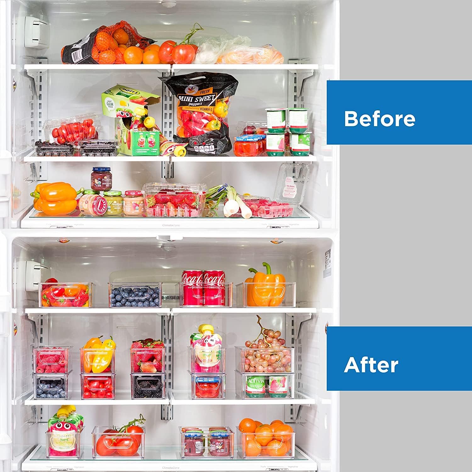 تصميم قابل للتكديس: أقدام مرتفعة في أسفل كل منظم ثلاجة قابل للتكديس تسمح له بالتكديس. تصميم عملي قابل للتكديس للمساعدة في زيادة مساحتك. قم بتكديسها أو استخدامها جنبًا إلى جنب للحفاظ على العناصر منظمة وسهلة العثور عليها.