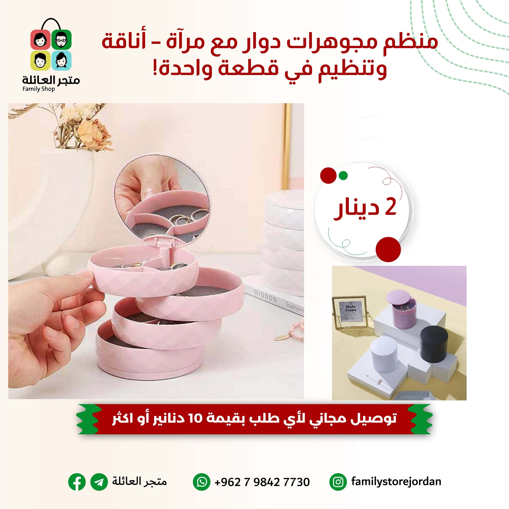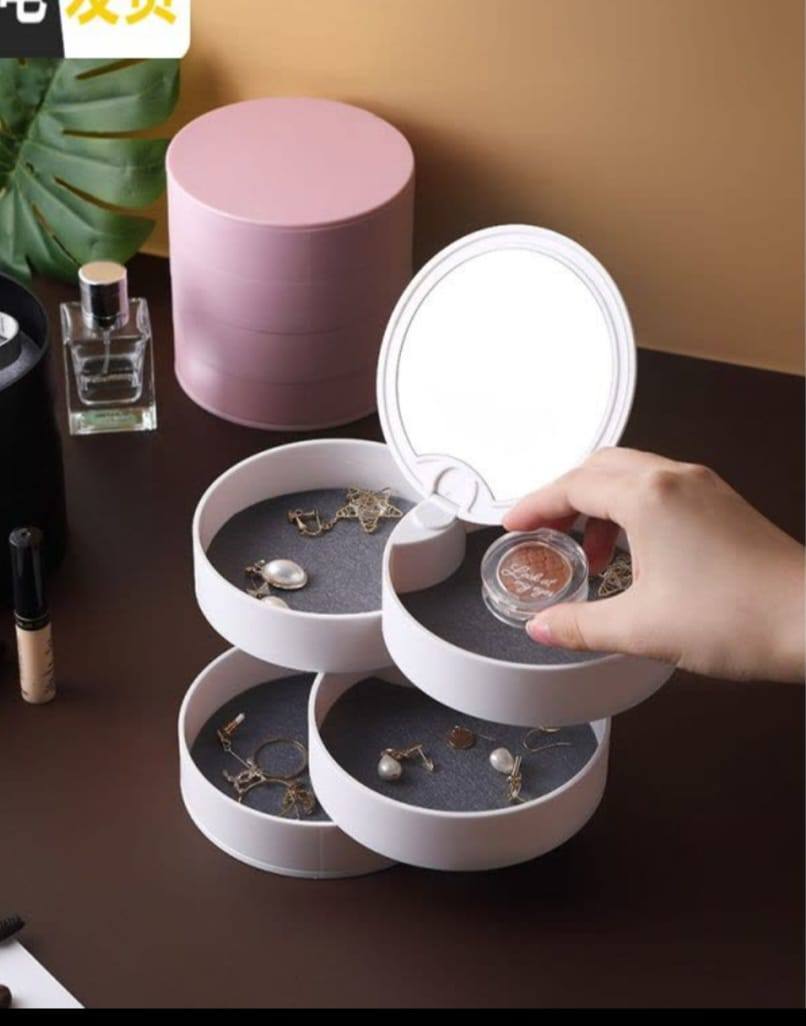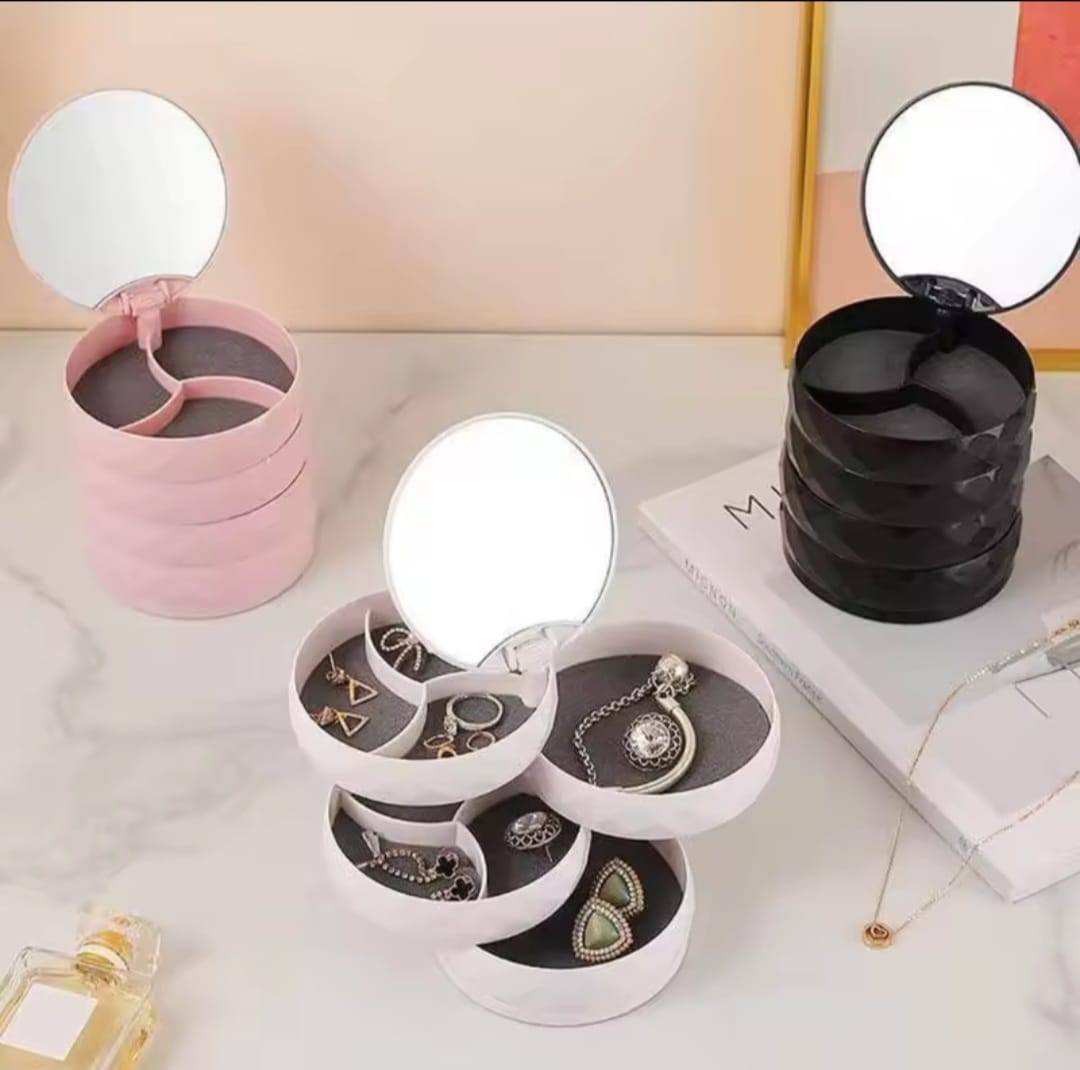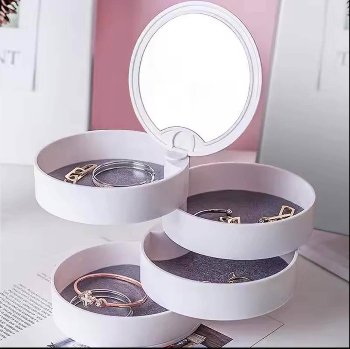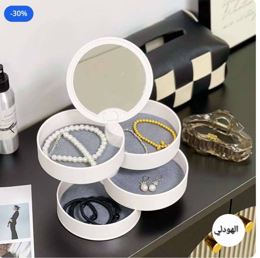 منظم مجوهرات دوار مع مرآة – أناقة وتنظيم في قطعة واحدة!