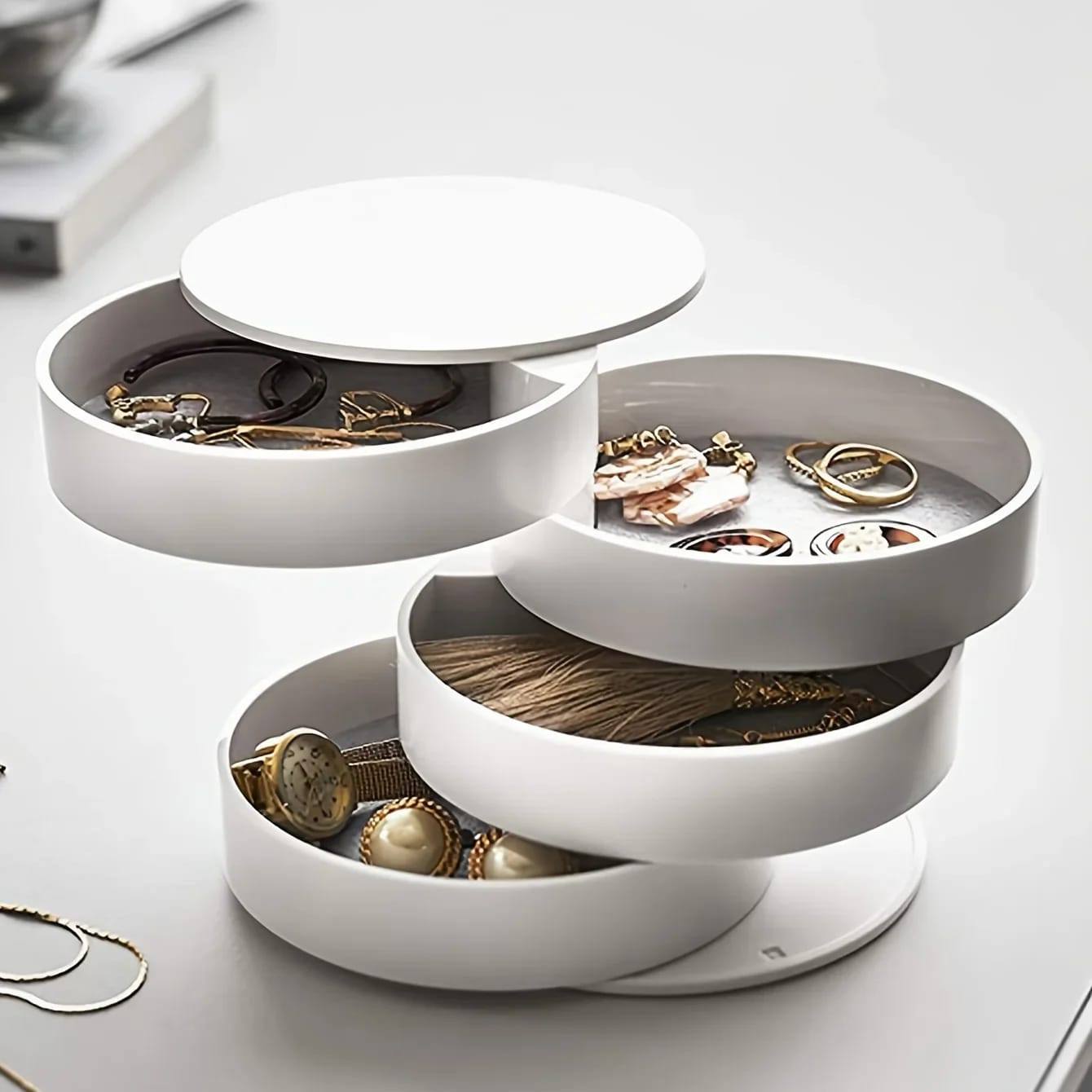 تصميم دوار 360 درجة: يمكنك تدويره بسهولة للحصول على رؤية شاملة لجميع مجوهراتك، مما يسهل عليك اختيار القطعة المناسبة في ثوانٍ.