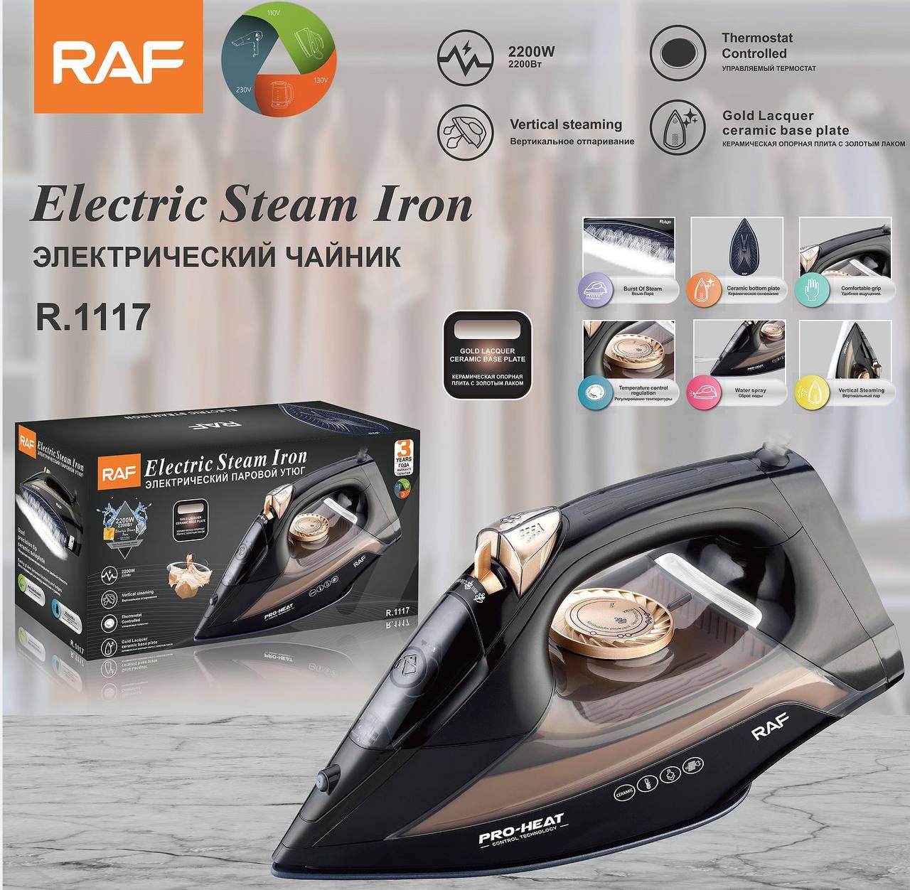 RAF R.1117 – مكواة بخار كهربائية بقدرة 2200 واط وقاعدة سيراميكية ذهبية