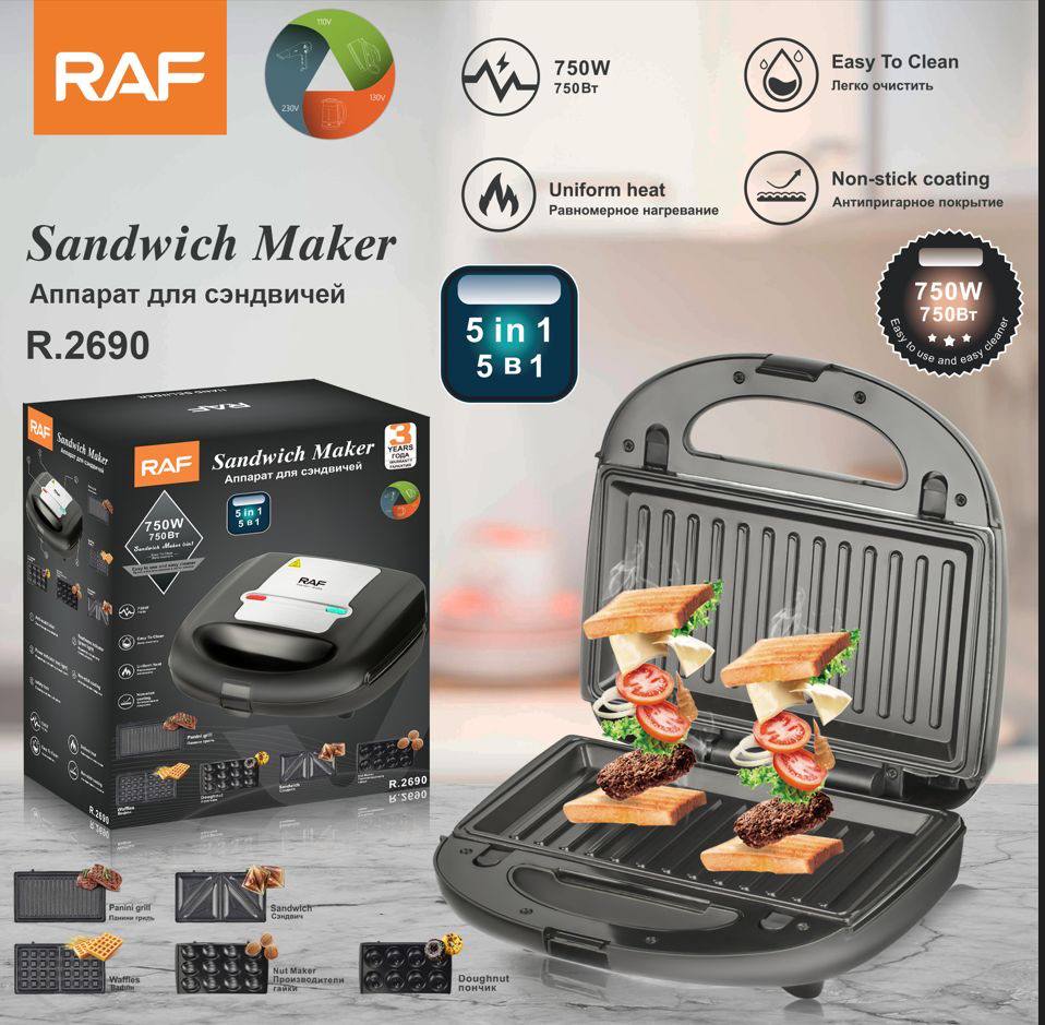 RAF R.2690 – صانعة سندويشات 5 في 1 بقدرة 750 واط وطلاء غير لاصق
