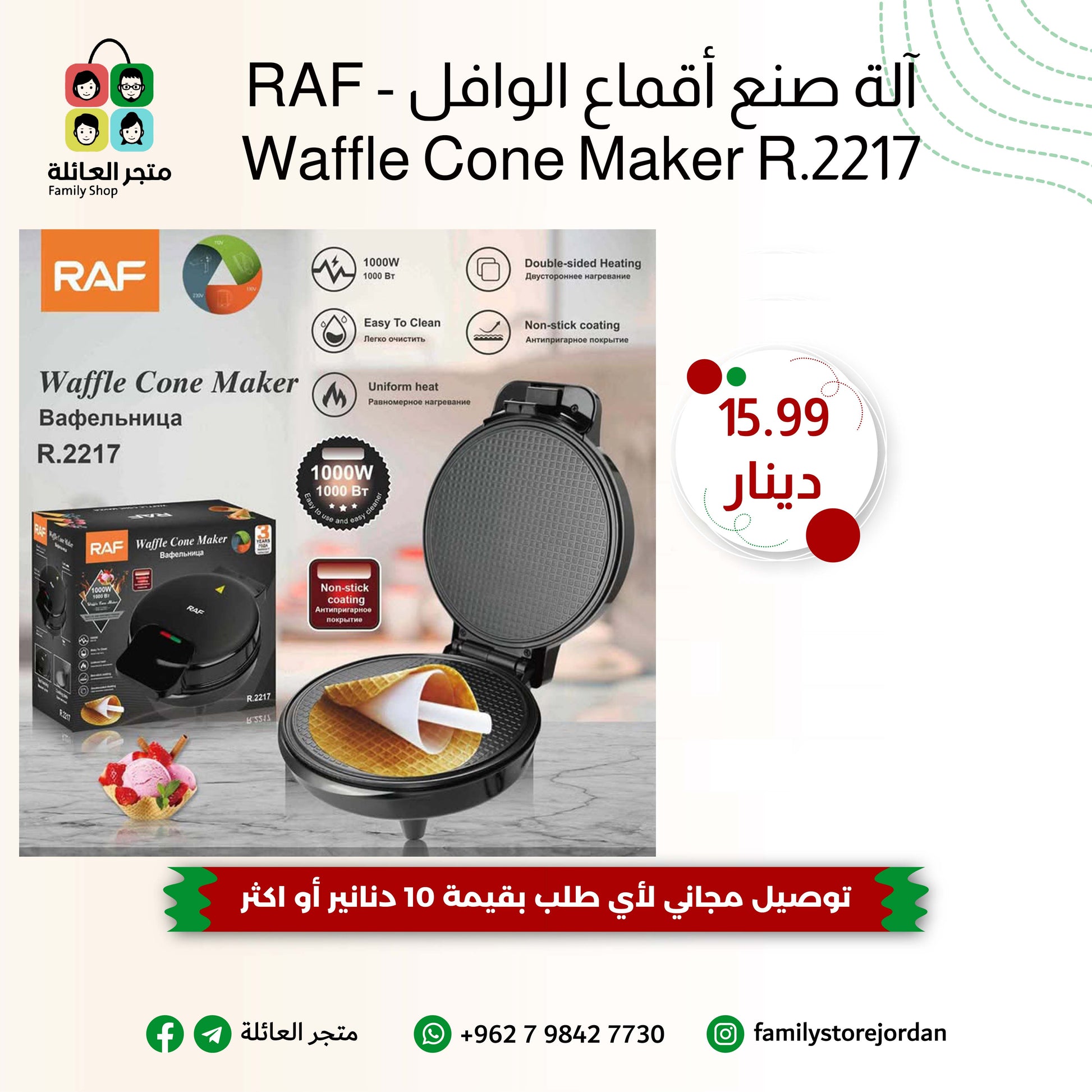 في "متجر العائلة"، نسعى لتقديم أجهزة مطبخ عملية وممتعة تجعل حياتكم اليومية أسهل وألذ. آلة صنع أقماع الوافل RAF R.2217 هي الخيار الأمثل لإضافة لمسة من المرح والإبداع إلى حلوياتكم. اطلبوها الآن وابدأوا بصنع أقماع الوافل اللذيذة!