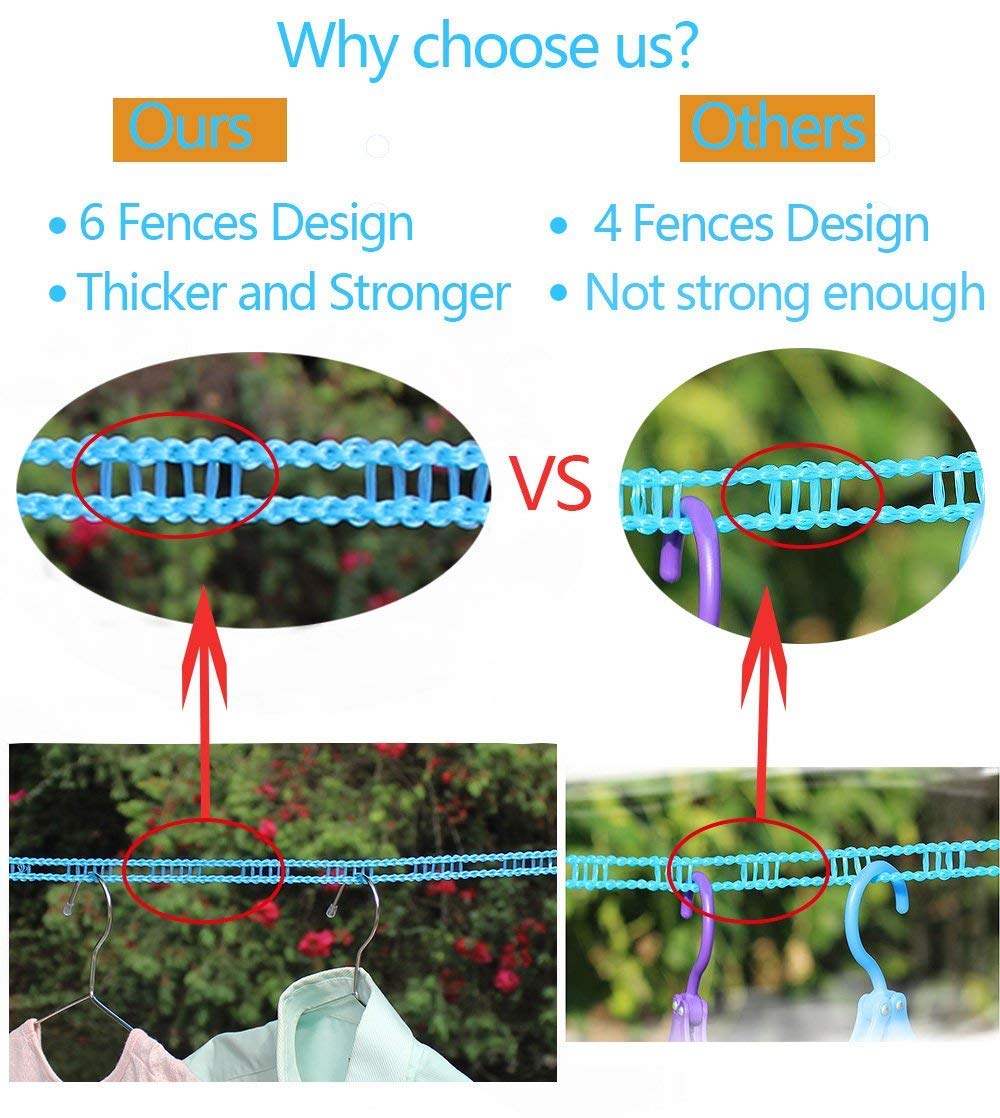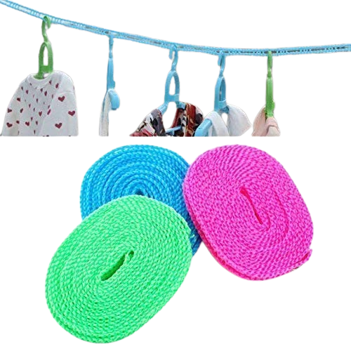 يتميز هذا الحبل بخامة قوية من النايلون، وتصميم فريد يجعله مقاومًا للانزلاق والرياح. بطول 3 أمتار، يمكن استخدامه في الشرفة، الحديقة، أو حتى داخل المنزل. كما يأتي مزودًا بخطافات تسهل تثبيته في أي مكان.