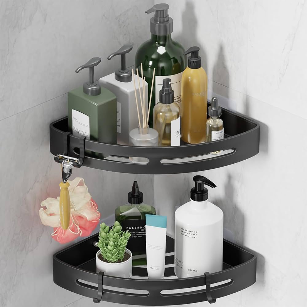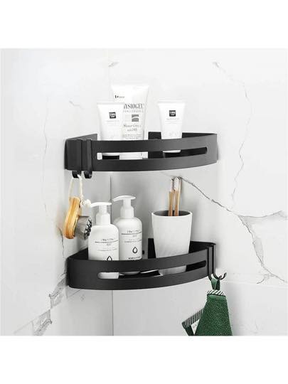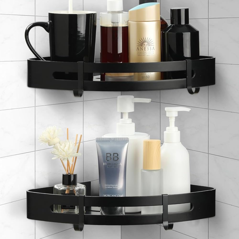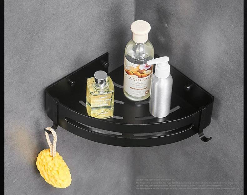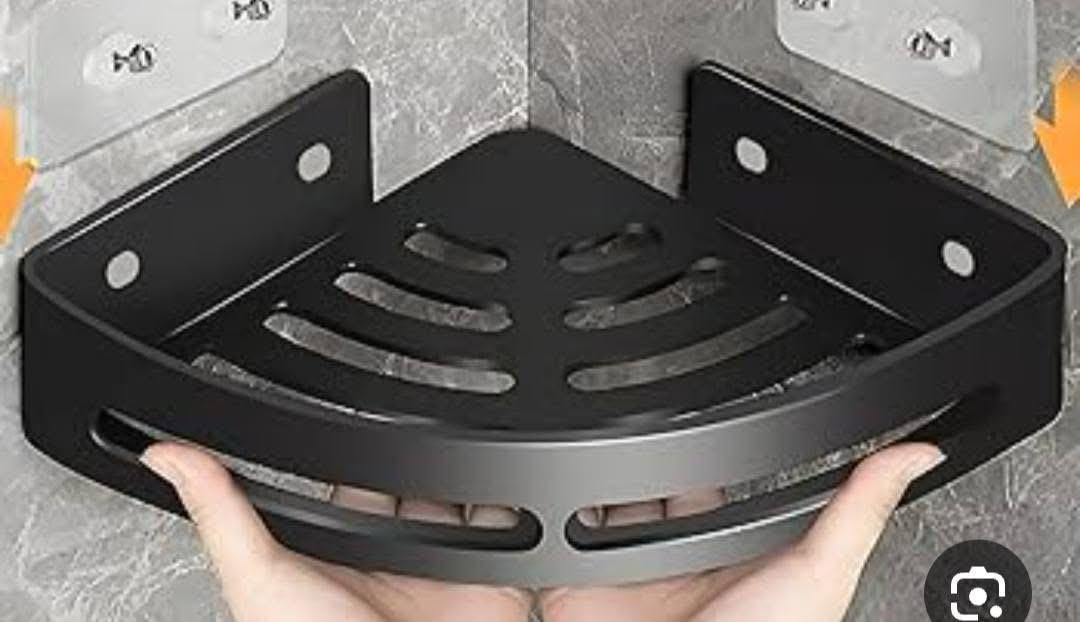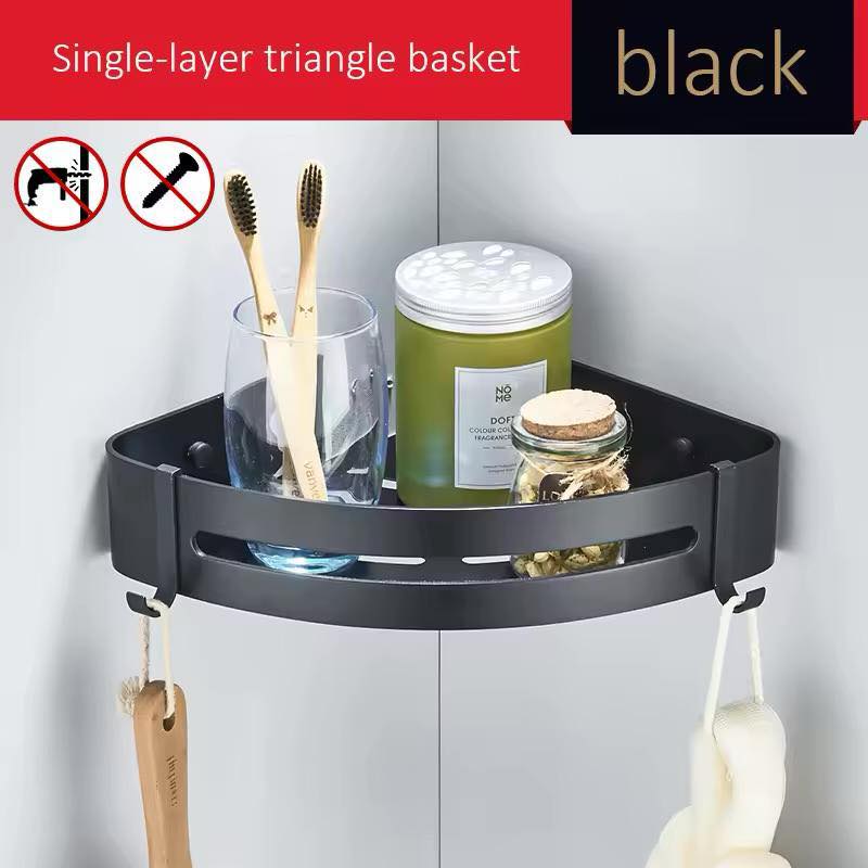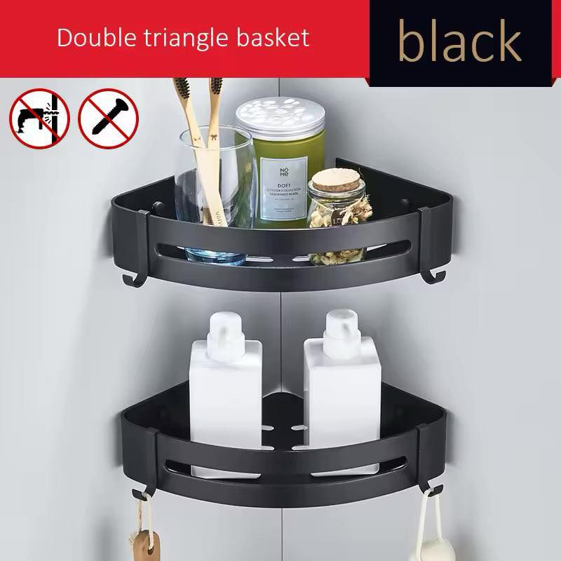 رف زاوية للحمام والمطبخ - تصميم أسود بدون حفر