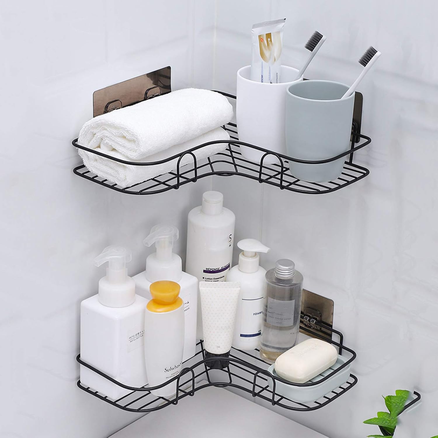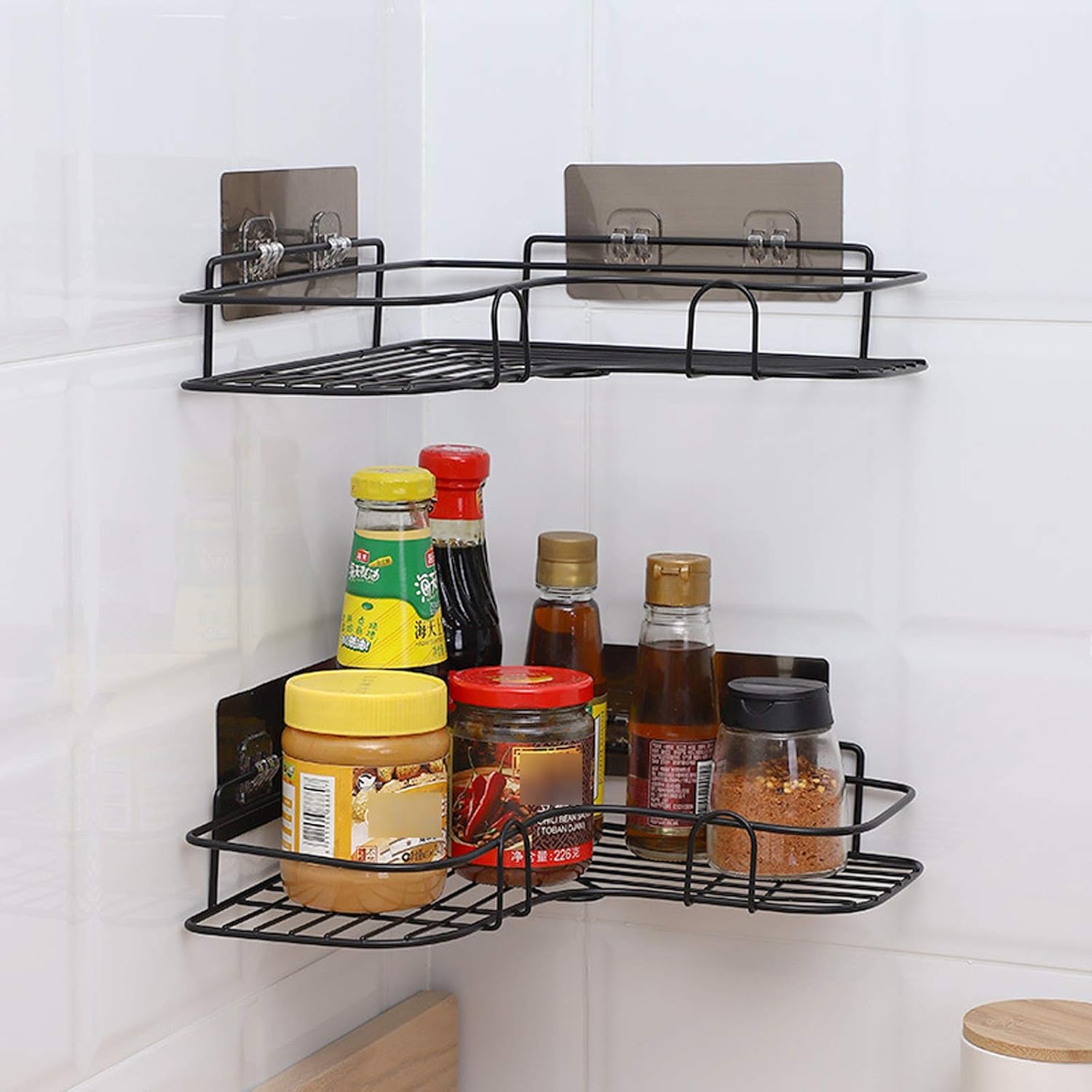 رف زاوية معدن لاصق للاستحمام - وداعًا لفوضى الحمام!