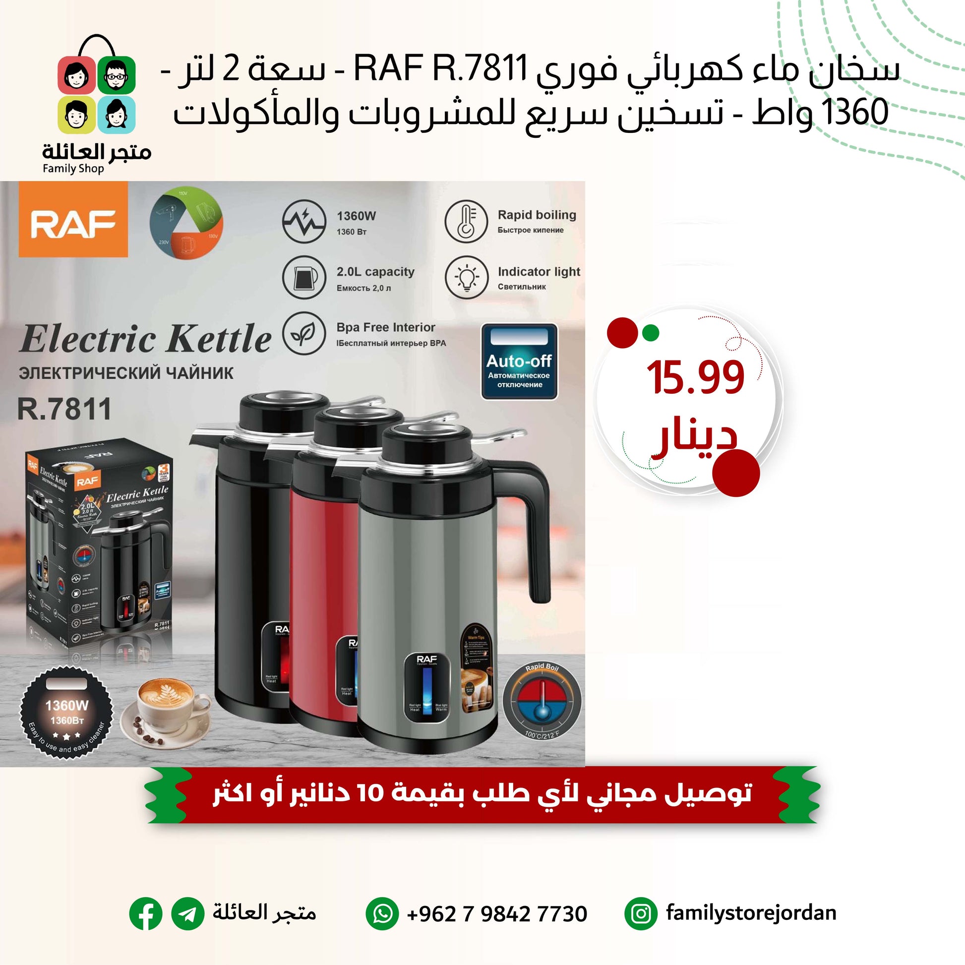 سخان ماء كهربائي فوري RAF R.7811 - سعة 2 لتر - 1360 واط - تسخين سريع للمشروبات والمأكولات