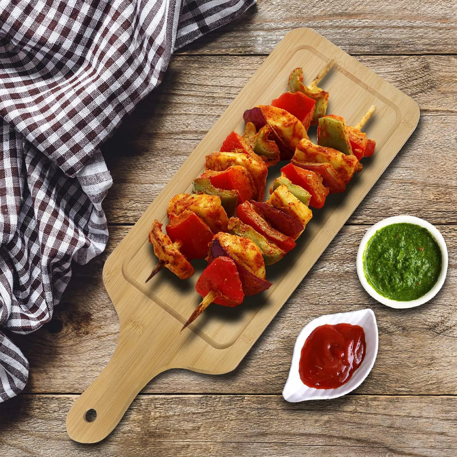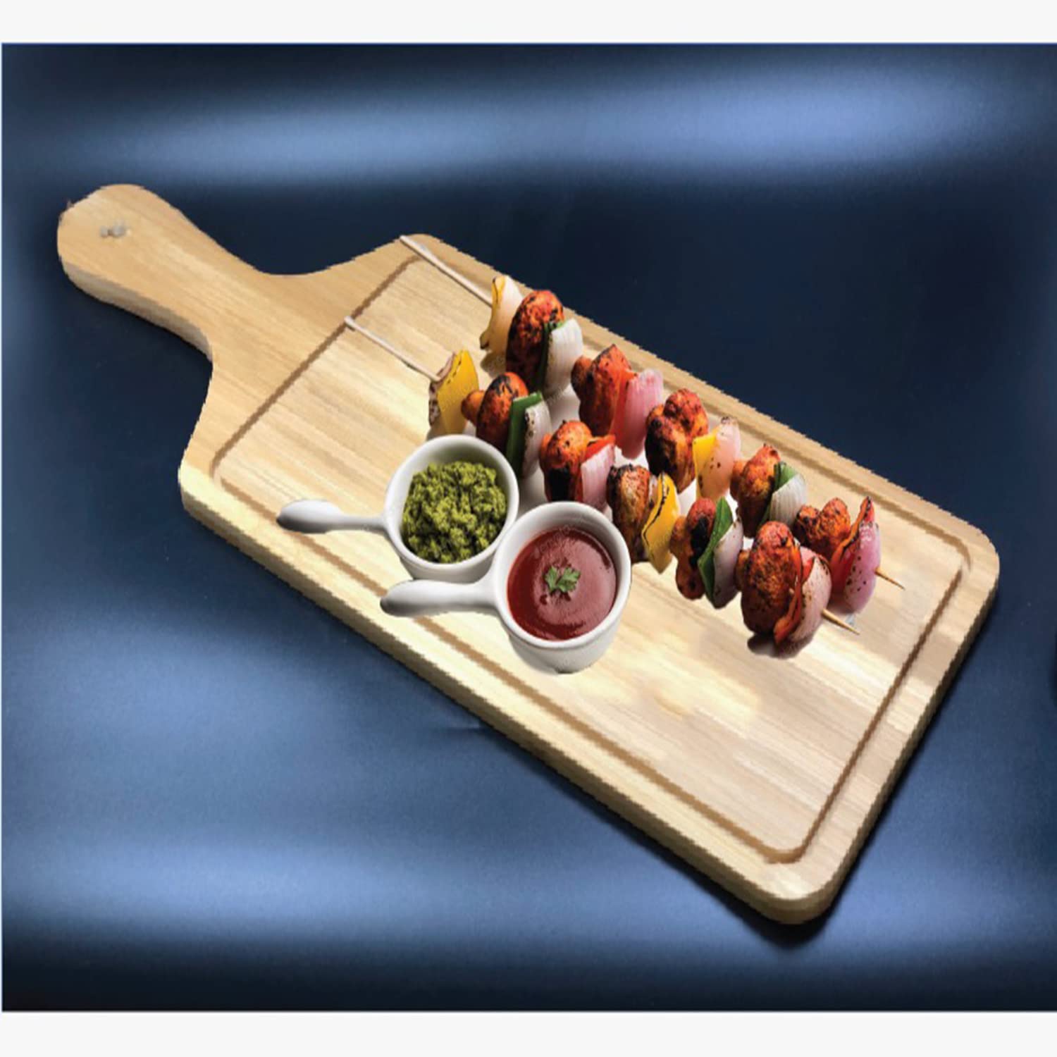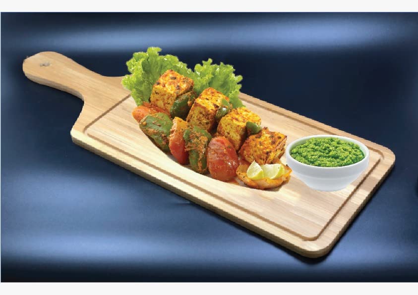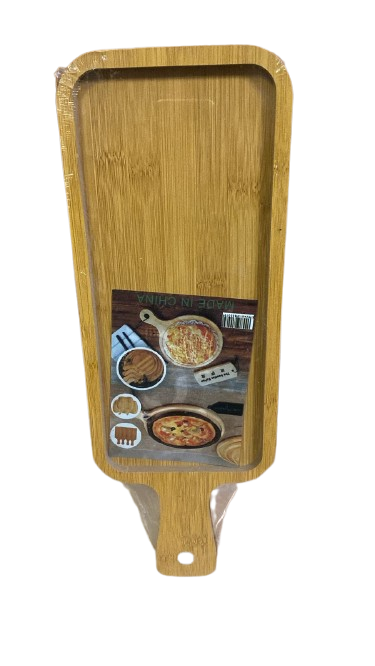 يتميز هذا الطبق بتصميمه العملي المزود بمقبض لسهولة الحمل والتقديم، وهو مصنوع من الخشب الطبيعي مما يمنحه مظهرًا ريفيًا وعصريًا في آن واحد. إنه خيار ممتاز للمنزل، المطاعم، الفنادق، الصالات، البارات، والكافيتريات.