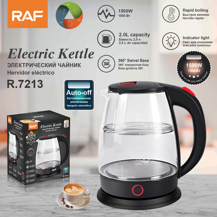 غلاية كهربائية راف RAF R.7213 تعمل تلقائيًا وتوقف عن العمل، غلاية مياه منزلية 2 لتر 1500 واط