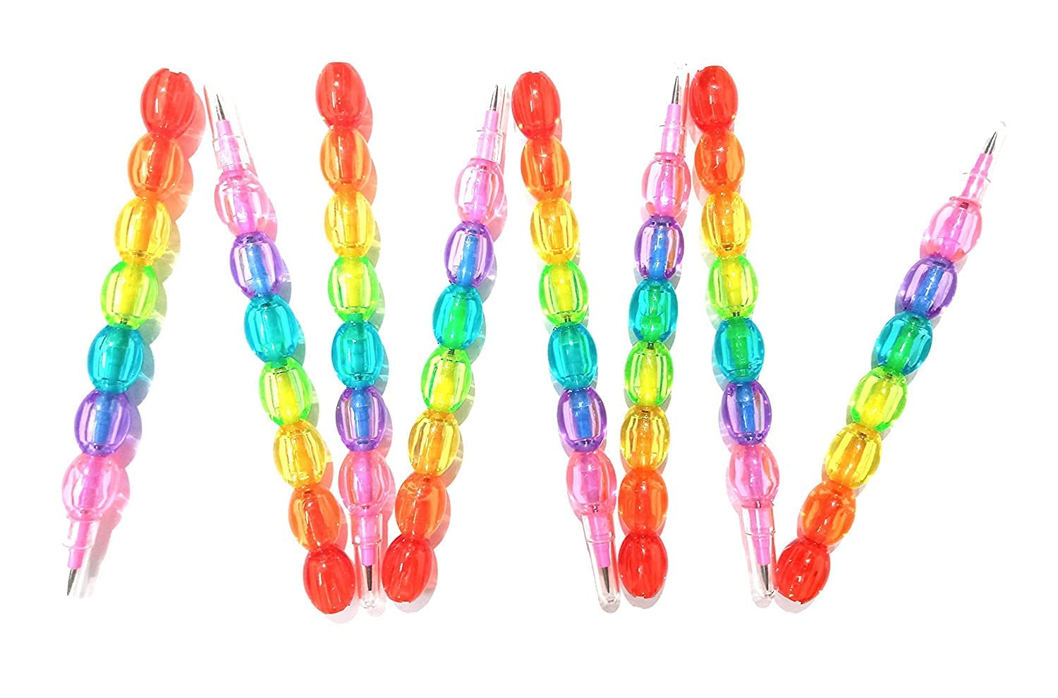قلم رصاص مزين بخرز اللؤلؤ – تصميم قوس قزح للأطفال 7 قطع
