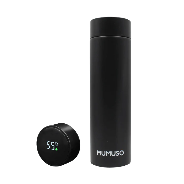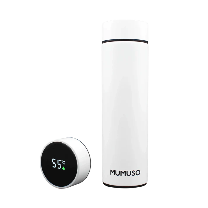 اسم المنتج: زجاجة ماء معزولة (شاشة ذكية لعرض درجة الحرارة /أبيض/أسود 480 مل)