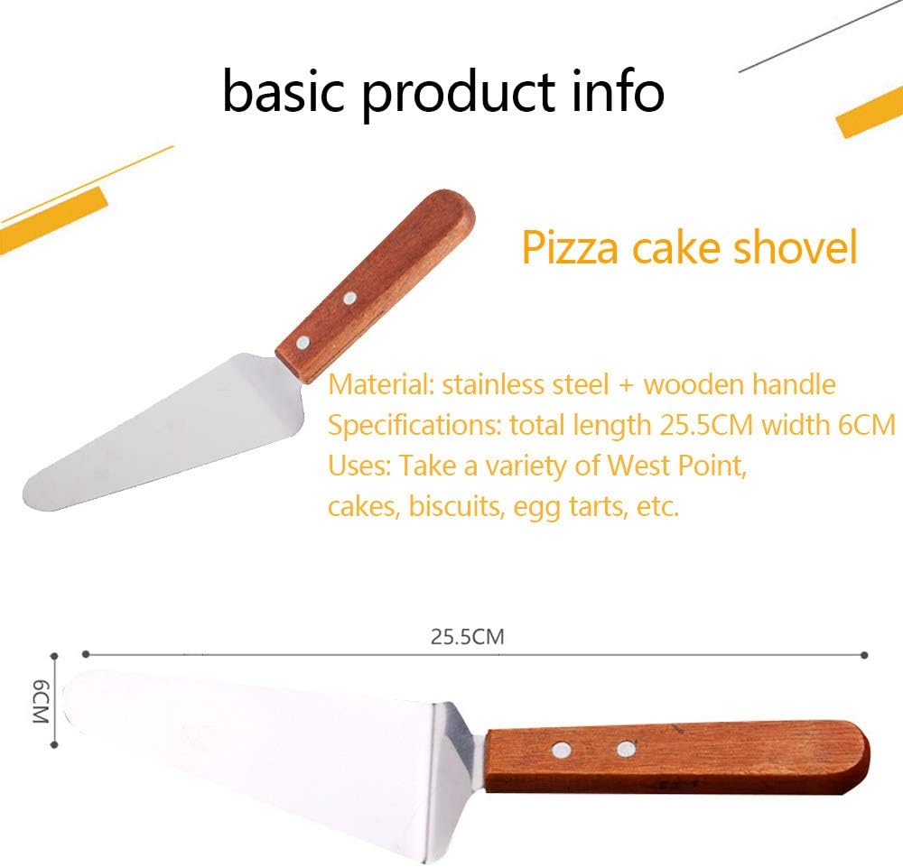 مجرفة بيتزا مصنوعة من الستانلس ستيل بمقبض خشبي مجرفة مثلثة الشكل ومقبض مريح للبيتزا، مقاس 25.5 × 6 سم