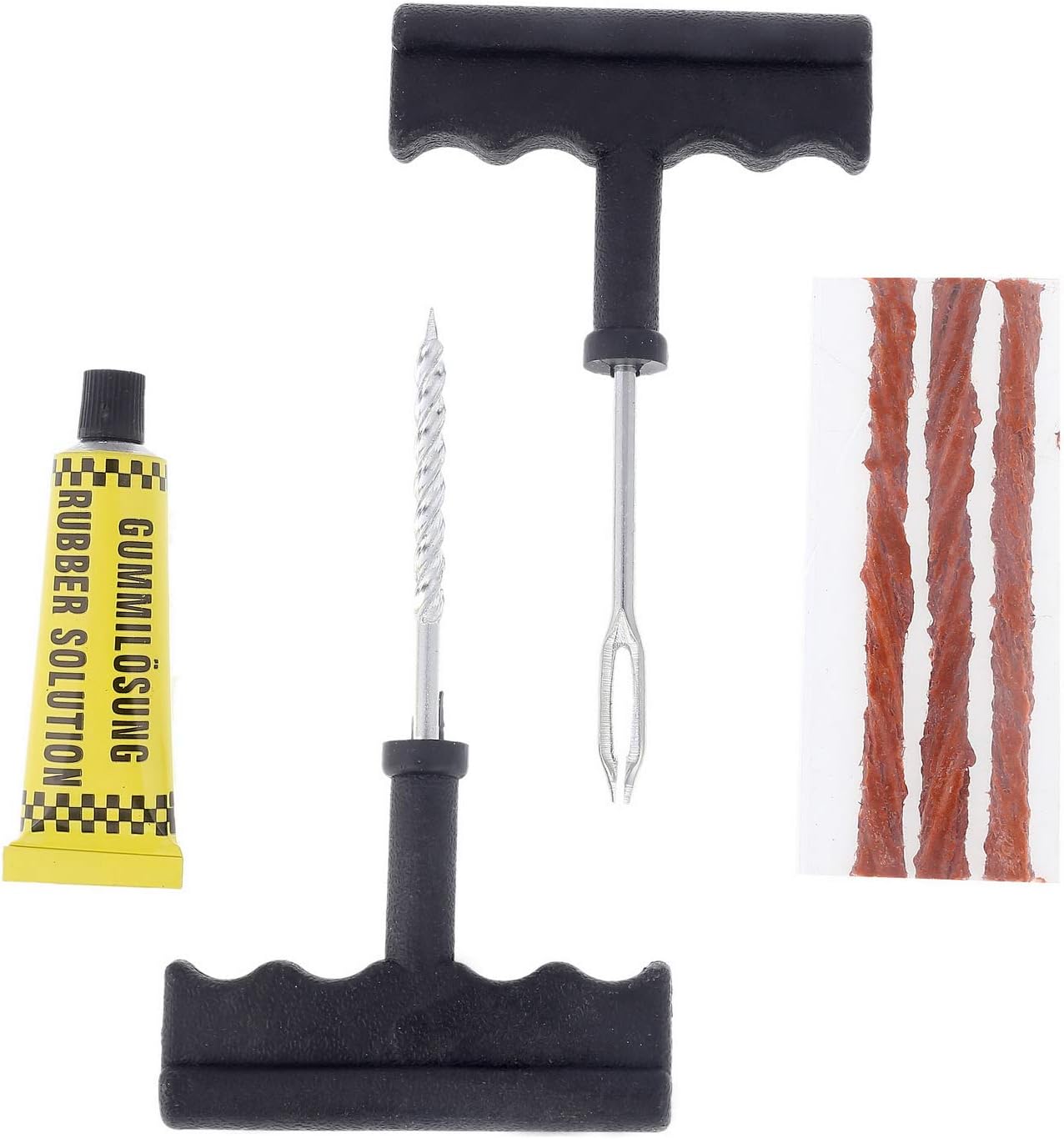 شرائط إصلاح مطاطية (Tire Repair Plugs/Strips): (عادة ما تكون 3-4 شرائط) لملء الثقب وإغلاقه بإحكام.