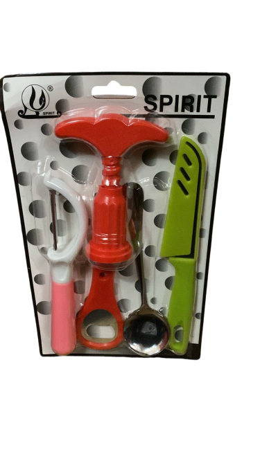 مجموعة أدوات مطبخ متعددة الاستخدام – مقشرة خضار، فتاحة زجاجات، سكين مشقوق، ملعقة، أداة ضغط