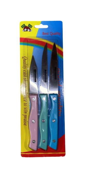 مجموعة سكاكين من الفولاذ المقاوم للصدأ مكونة من 3 قطع للفواكه والخضروات