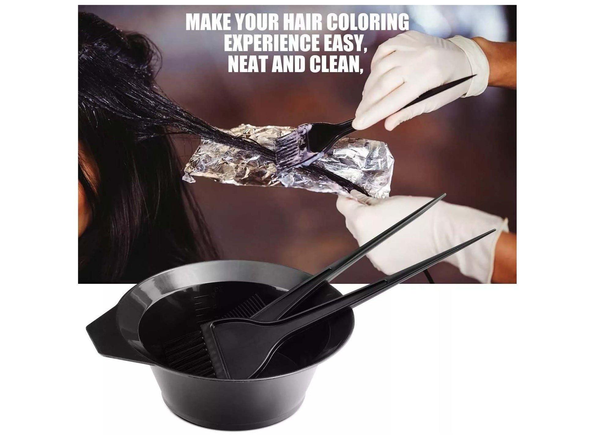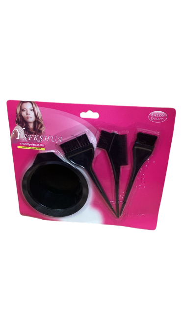 مجموعة شعر مكونة من 4 قطع - 3 فرش تلوين شعر ومجموعة وعاء واحد - بجودة الصالون