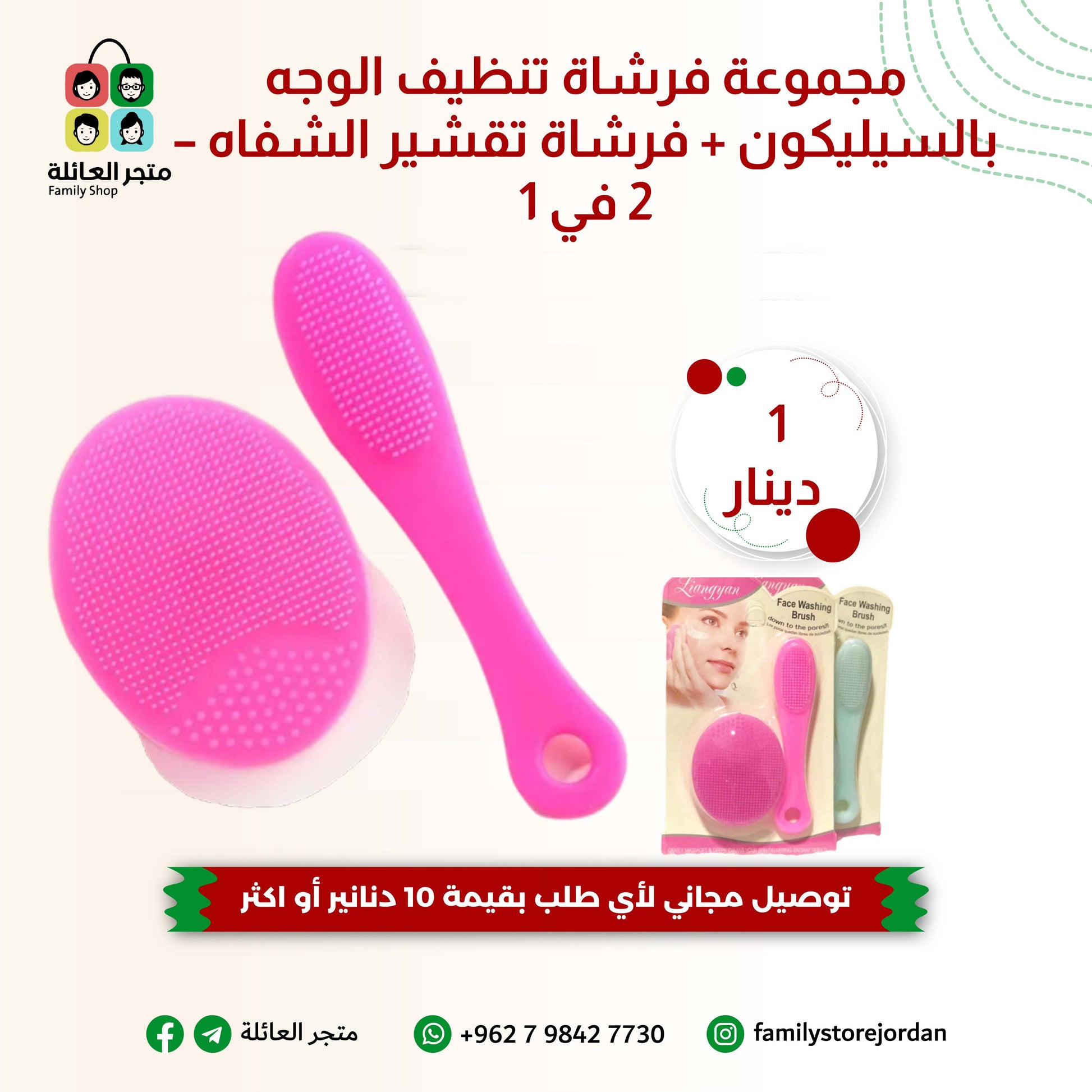 مجموعة فرشاة تنظيف الوجه بالسيليكون + فرشاة تقشير الشفاه – 2 في 1