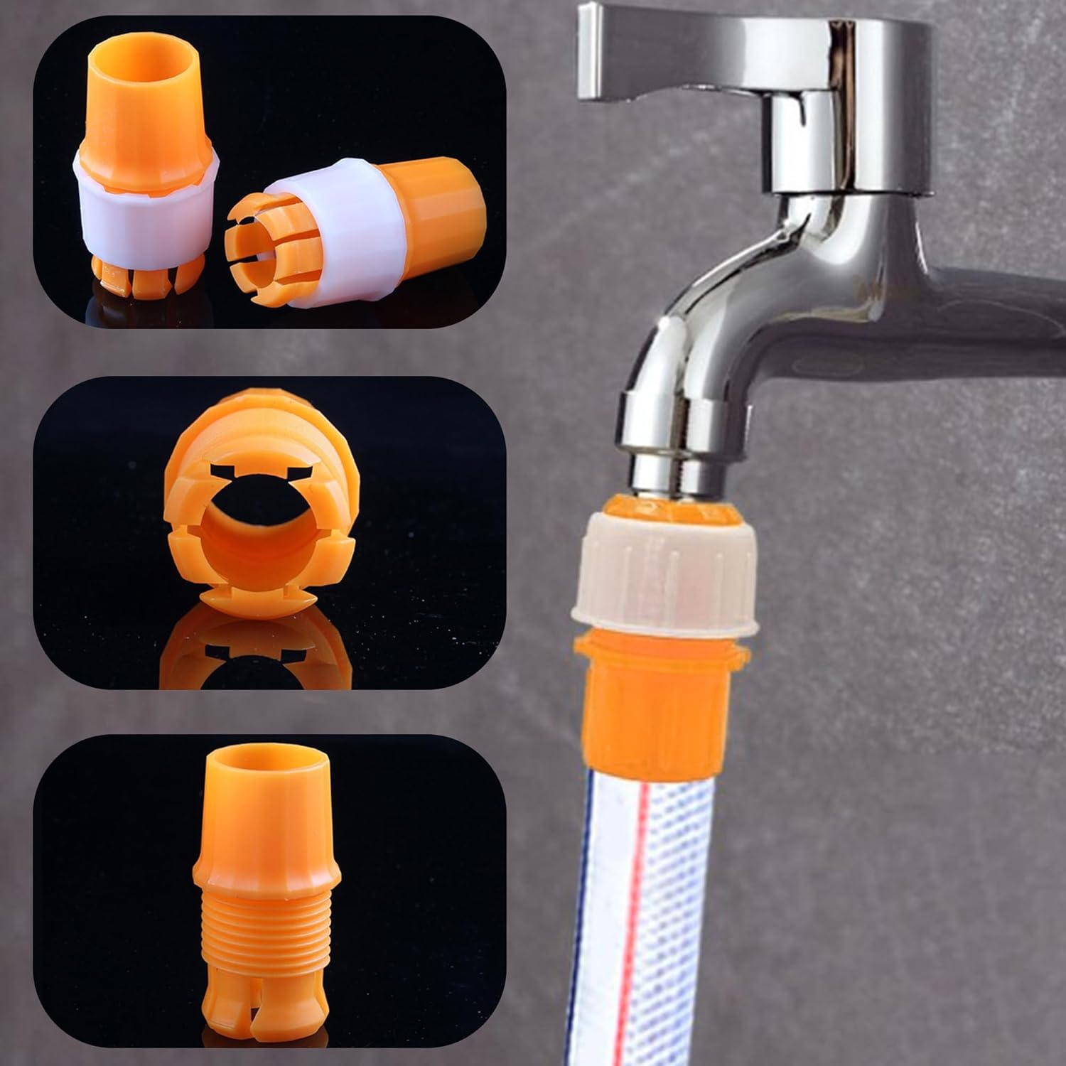 مجموعة مشابك خرطوم ، مكونة من 6 قطع، موصل صنبور عالمي، محول خرطوم، مع خرطوم حديقة ملولب، موصل صنبور، موصل سريع للبستنة، ري المنزل، غسيل السيارات (برتقالي)