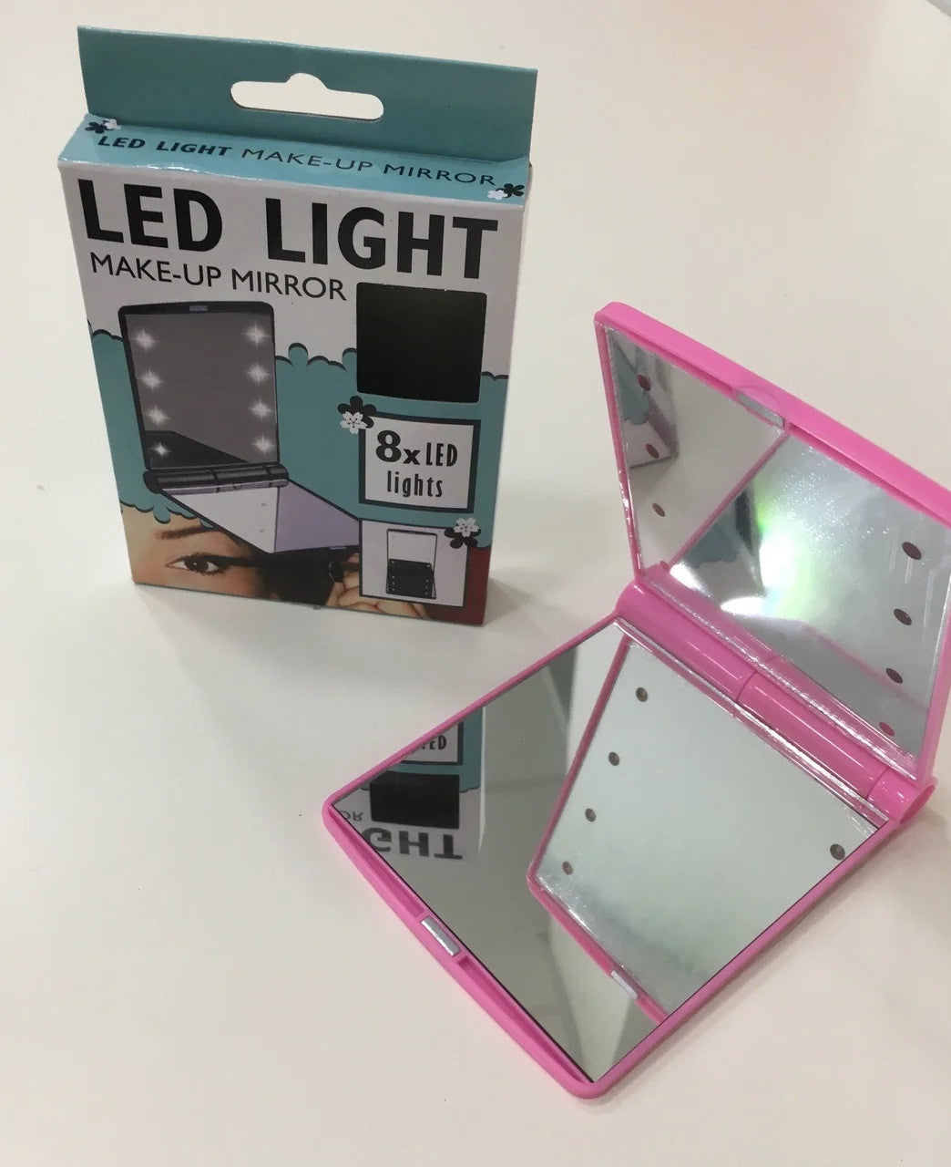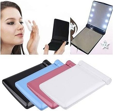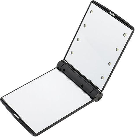 مرآة مكياج صغيرة قابلة للطي مع اضاءة ليد 8 مصابيح - مرآة سفر جيبية