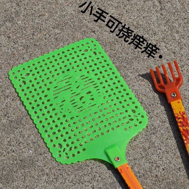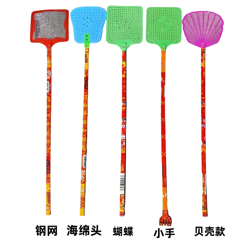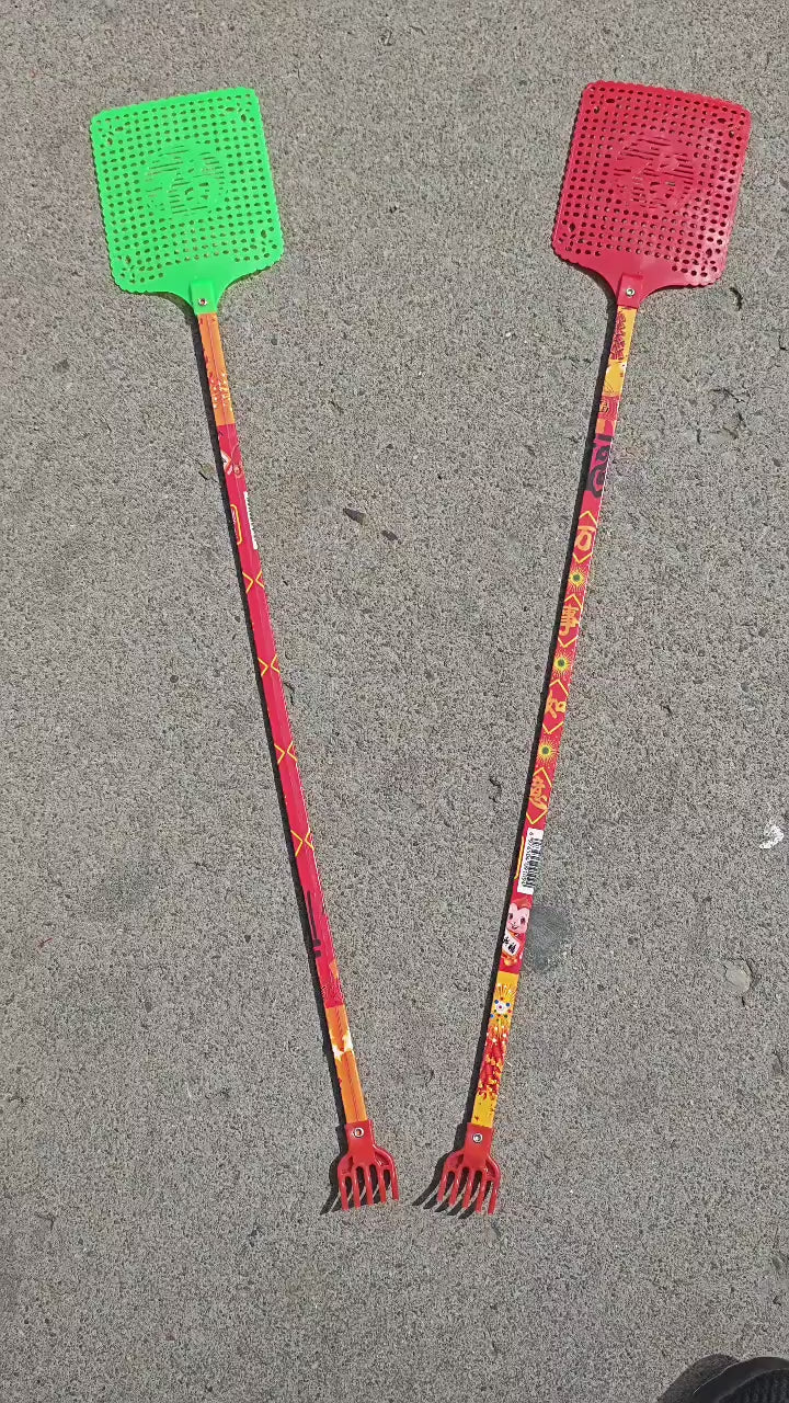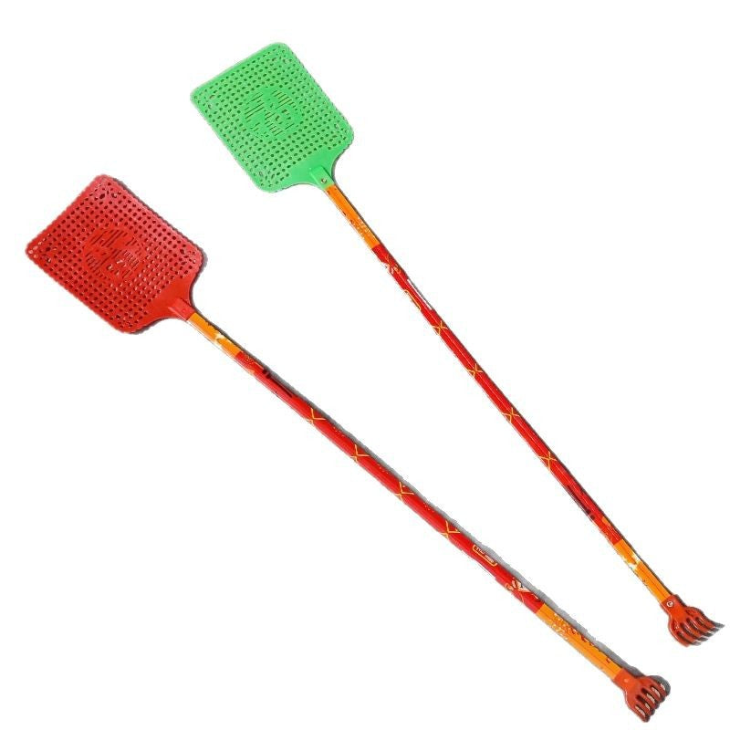 مضرب ذباب كبير بمقبض طويل ورأس لا يمكن كسره وحكاكة من الجهة الاخرى مضرب ذباب يدوي منزلي قديم الطراز من البلاستيك