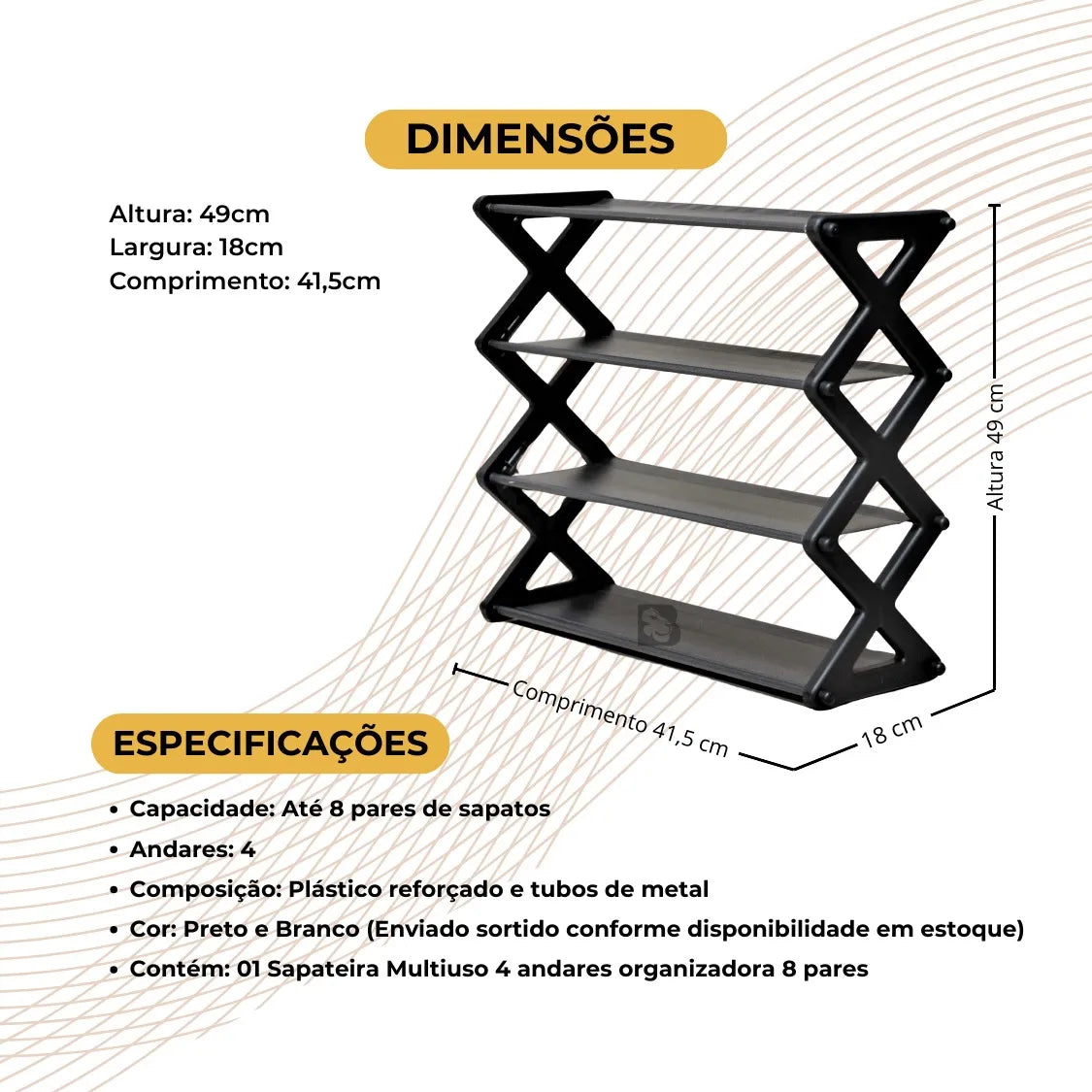 4 طبقات للتخزين: يوفر مساحة كافية لتخزين مجموعة من الأحذية بشكل منظم.