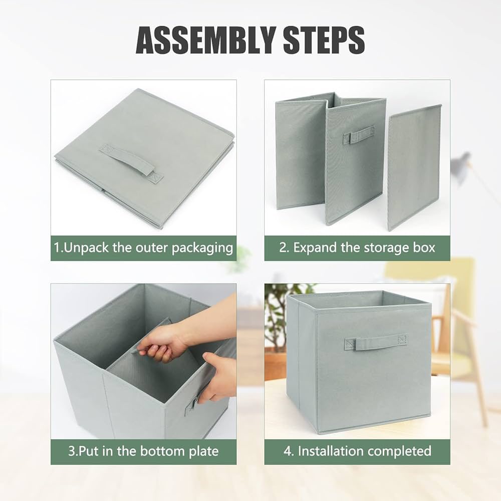 【قابلة للطي ومتينة】 يمكن طي صناديق التخزين المكعبة وتخزينها بعد إزالة الكرتون عند عدم الاستخدام، مما يوفر المساحة. الجزء السفلي والجوانب الأربعة مُعززة بالكرتون، مما يجعل سلال الرفوف تتحمل وزنًا كبيرًا، وتحافظ على شكلها دائمًا، ولا تنهار بسهولة.