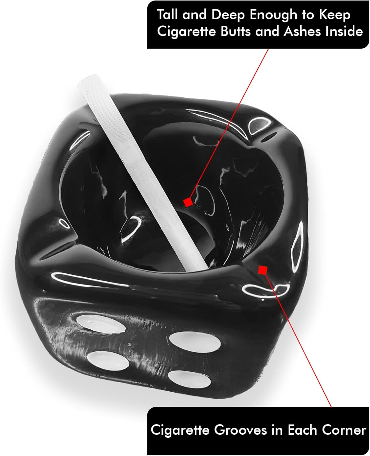 ✔️ سهلة التنظيف للغاية - تنظيف منفضة سجائر النرد الكلاسيكية الخاصة بنا أمر سهل. ما عليك سوى مسحها بقطعة قماش مبللة أو شطفها دون عناء بأقل قدر من الماء ثم تجفيفها لتنظيف سريع وسهل. منفضة السجائر الفريدة هذه طويلة وعميقة بما يكفي للحفاظ على أعقاب السجائر ورماد التبغ بالداخل.