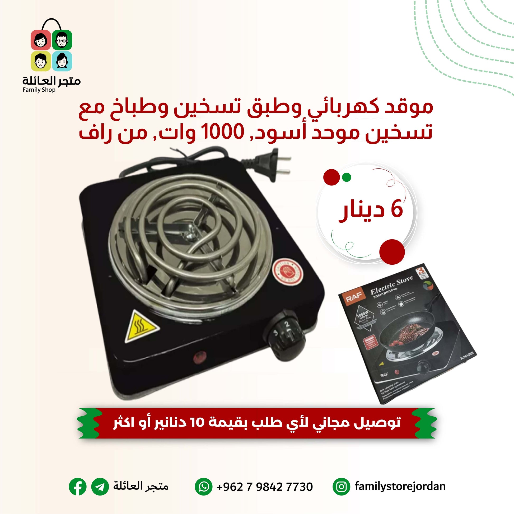 موقد كهربائي وطبق تسخين وطباخ مع تسخين موحد أسود, 1000 وات, من راف