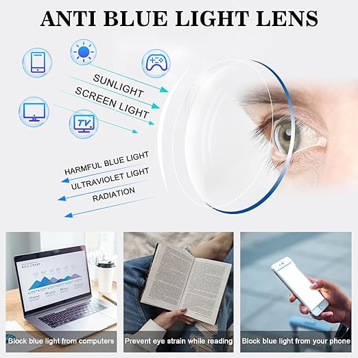 [عدسة حماية العين الاحترافية]: عدسة مكبرة تحجب الضوء الأزرق مع حماية من الأشعة فوق البنفسجية تساعدك على تصفية الضوء الأزرق الضار عند استخدام الشاشة الرقمية والقراءة.
