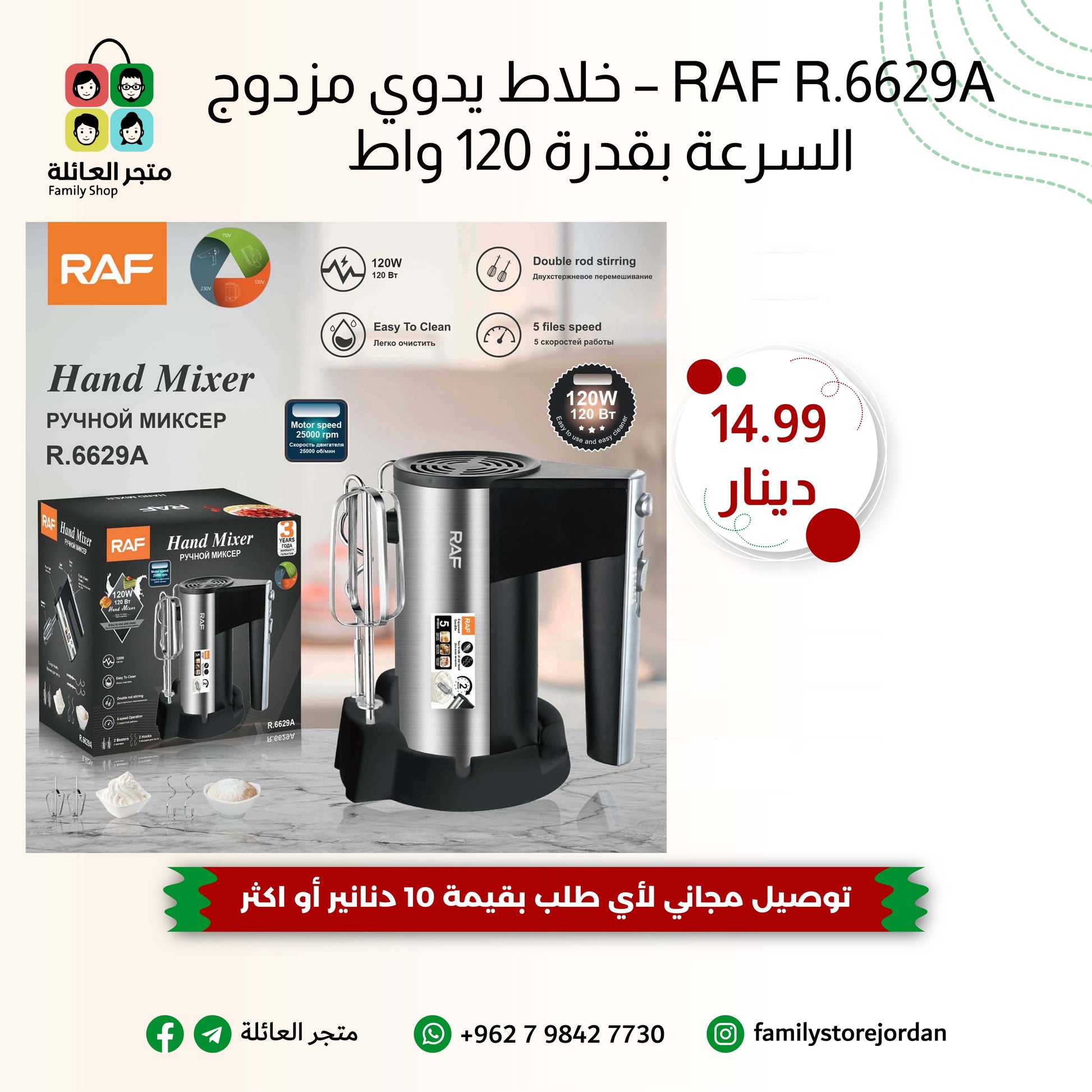عنوان المنتج: RAF R.6629A – خلاط يدوي مزدوج السرعة بقدرة 120 واط