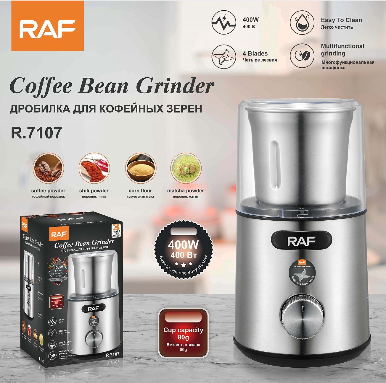 RAF R.7107 – مطحنة بن كهربائية بقدرة 400 واط وشفرات رباعية لطحن دقيق وسريع